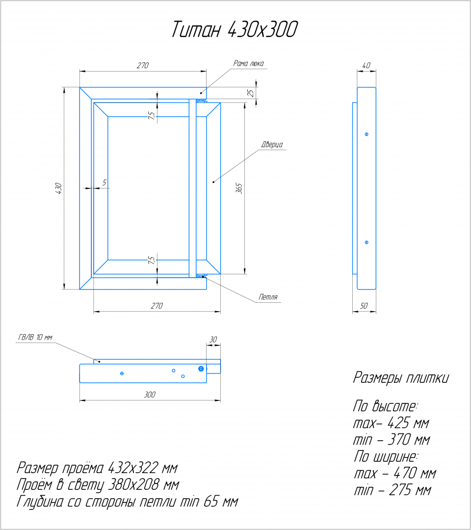 | Характеристики люка | |