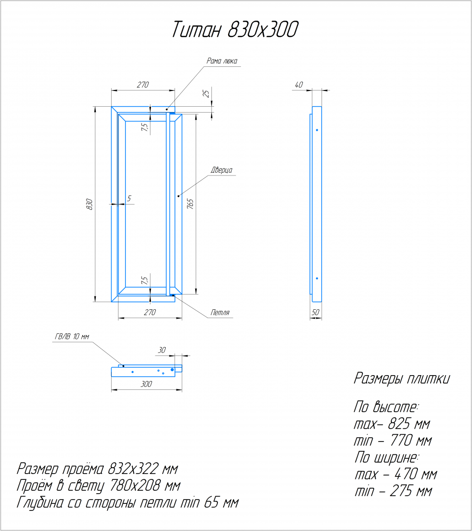 Размер плитки Высота от 770-825 мм., ширина от 275-470 мм
