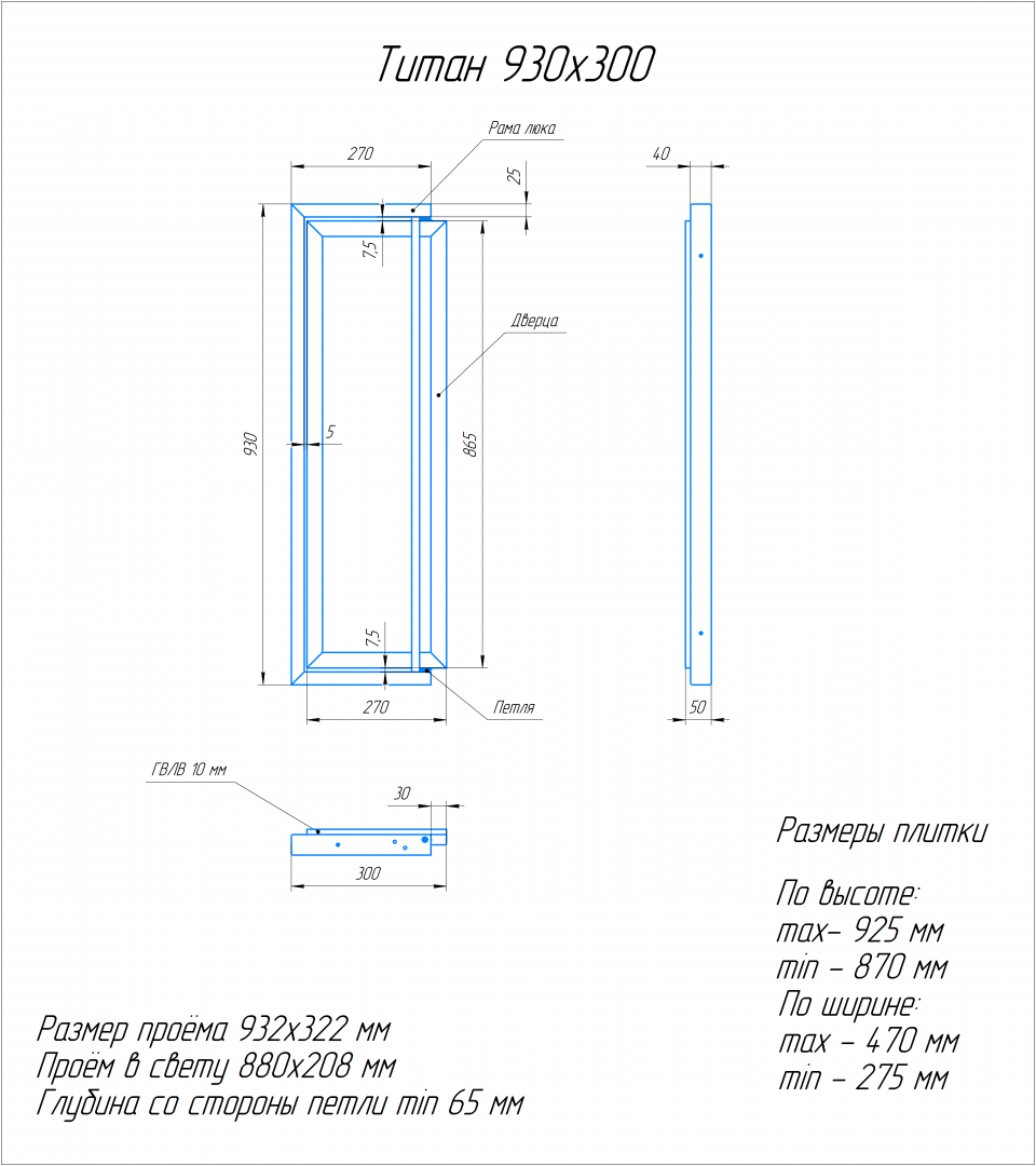 | Размер плитки | Высота от 870-925 мм., ширина от 275-470 мм |