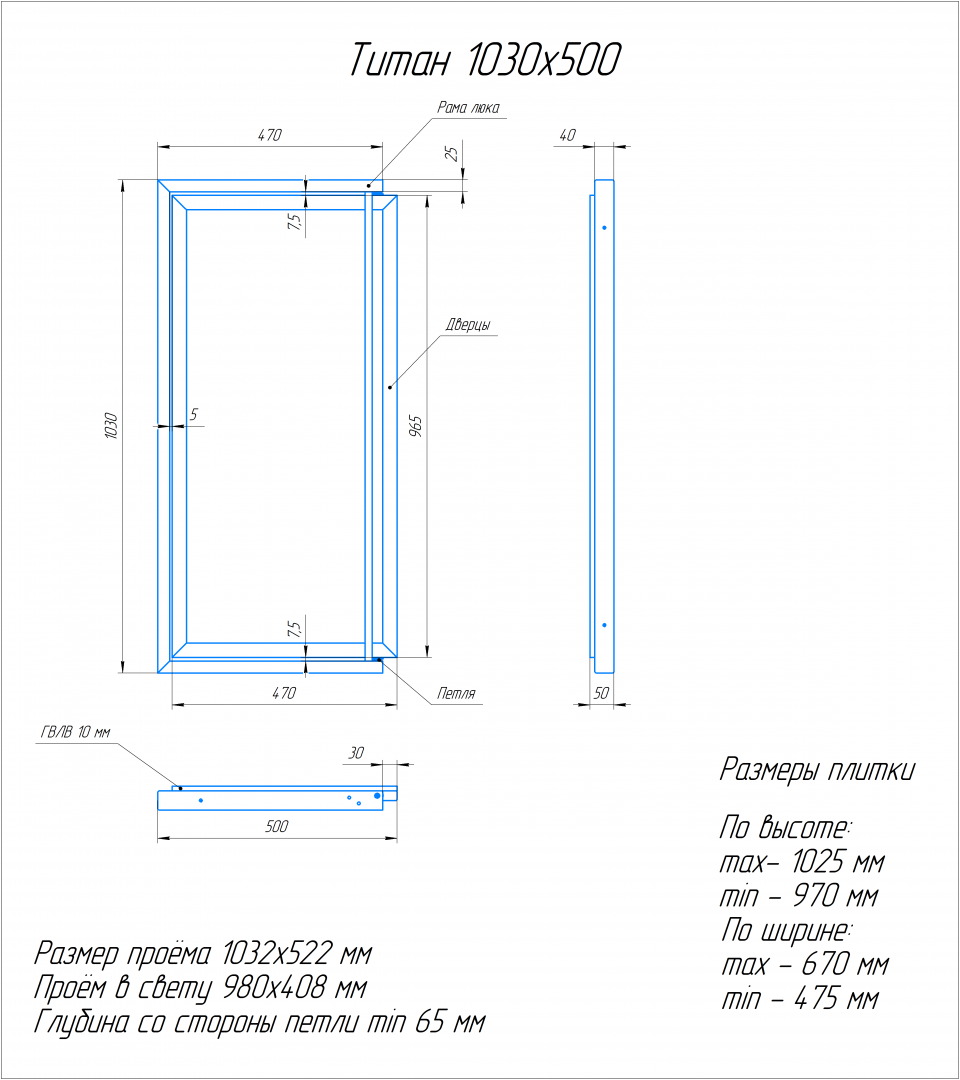 | Размер плитки | Высота от 970-1025 мм., ширина от 475-670 мм |