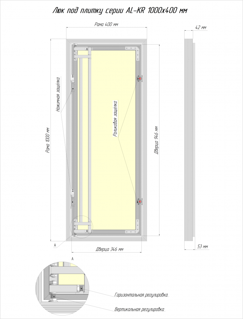 Сантехнические люки под плитку серии AL-KR (алюминиевый) 100x40 см