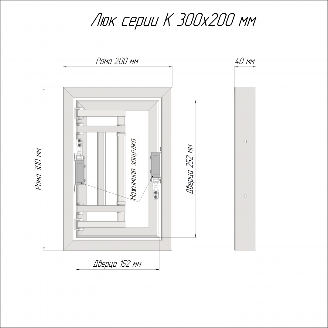 Скрытые люки под плитку серии K (сталь / нажимной) 30x20 см