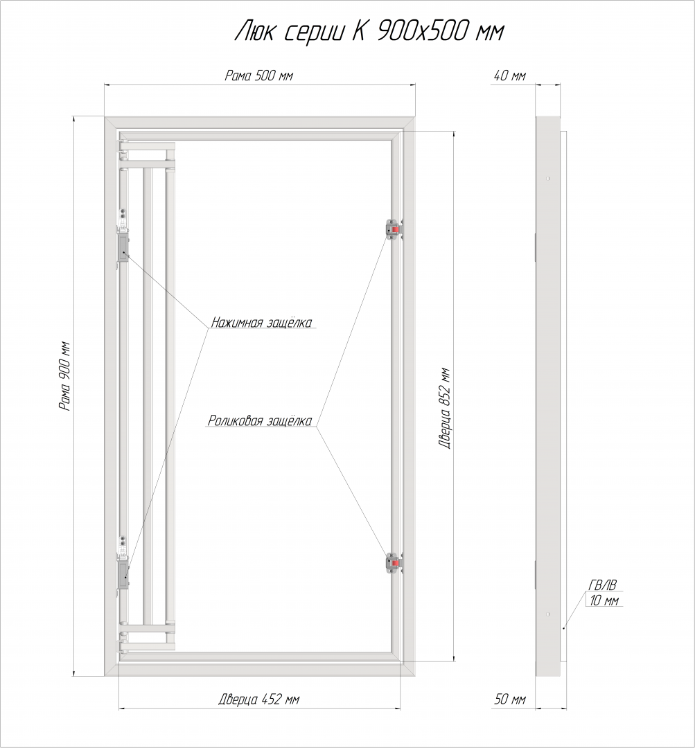 Скрытые люки под плитку серии K (сталь / нажимной) 90x50 см