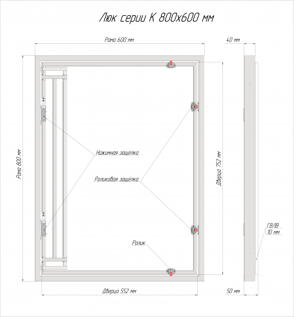 Скрытые люки под плитку серии K (сталь / нажимной) 80x60 см