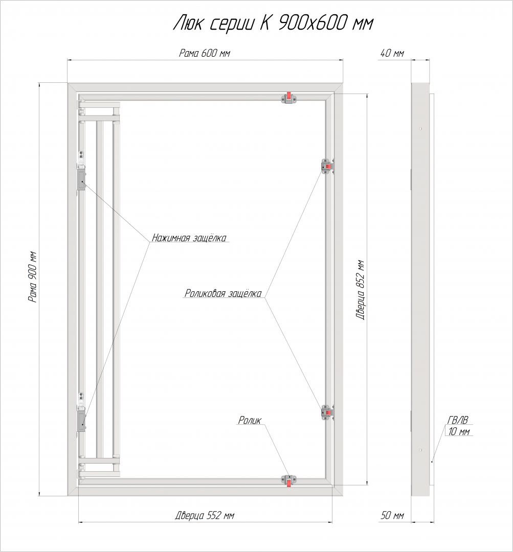 Скрытые люки под плитку серии K (сталь / нажимной) 90x60 см