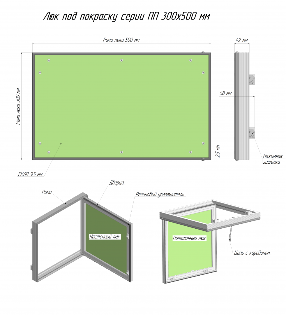Скрытый люк под покраску серии ПП (Короб) 30x50 см