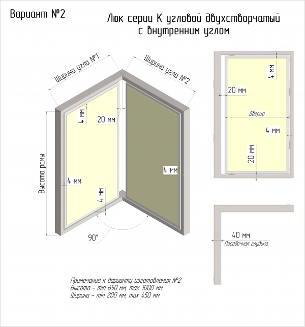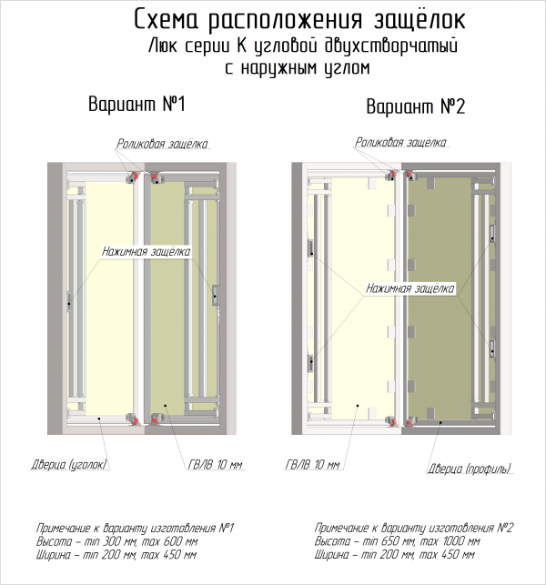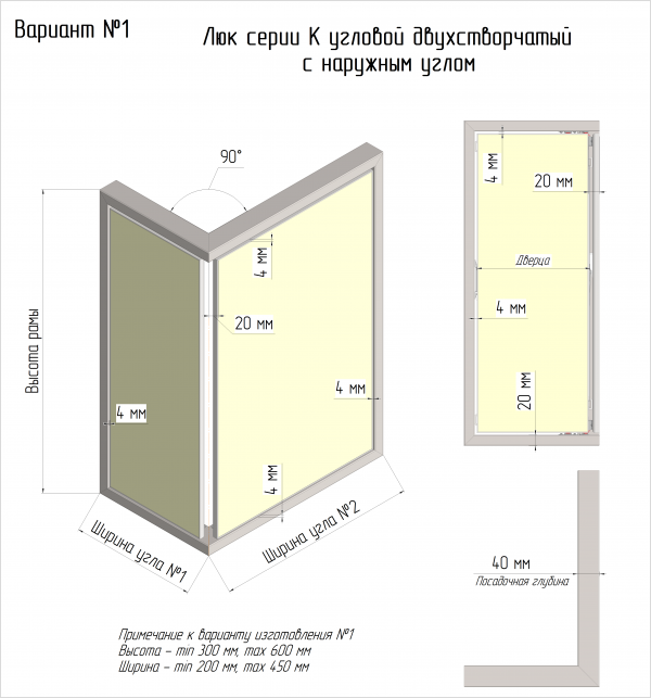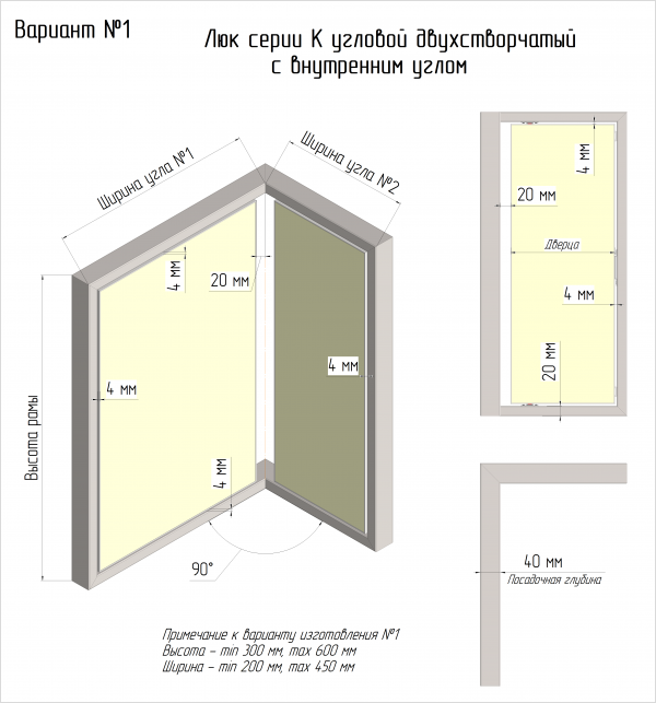 При заказе ревизионного люка, укажите ширину одной и другой стороны проема, а так же высоту, материал, способ открывания и контактные данные. Наш менеджер свяжется с Вами в ближайшее рабочее время и уточнит стоимость и сроки изготовления.